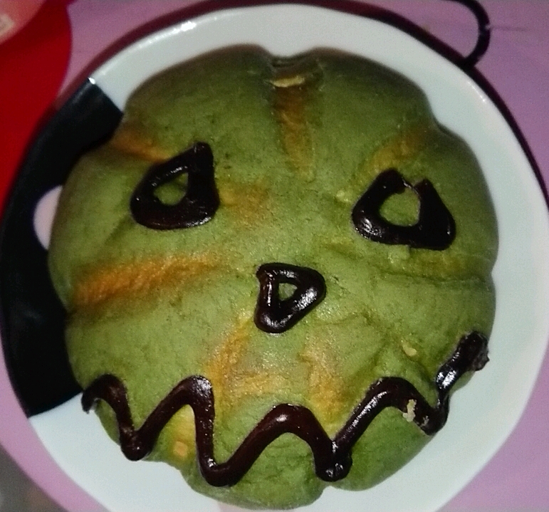 中にかぼちゃペーストが入っていて、甘いパンです(●´ω`●)