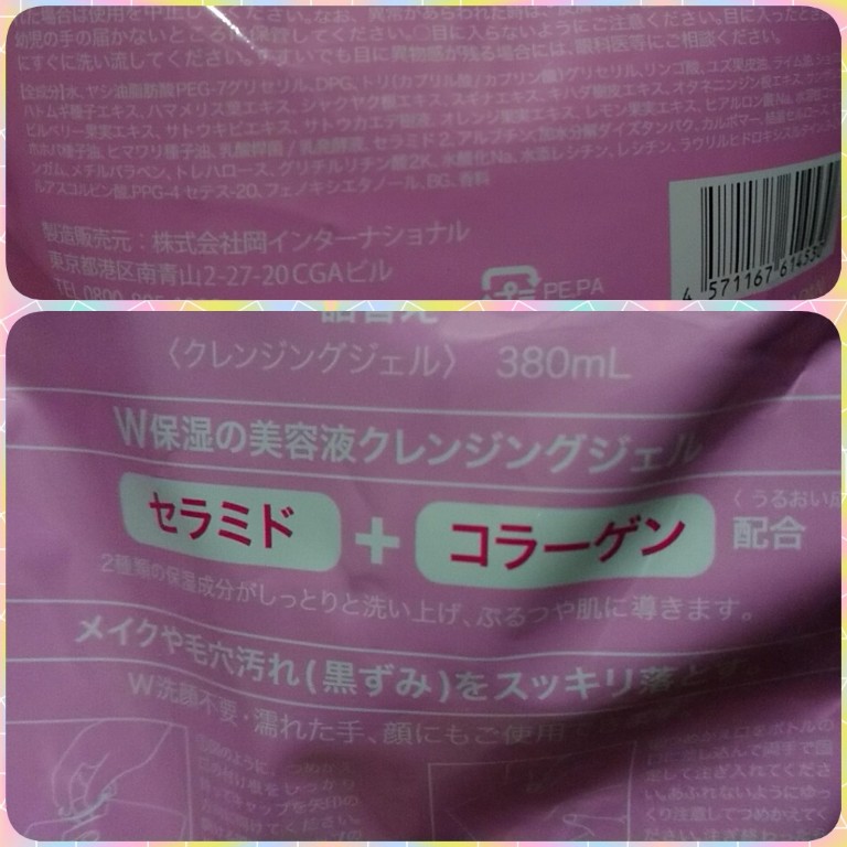 水、ヤシ油脂肪酸PEG-7グリセリル、DPG、トリ(カプリル酸/カプリン酸)グリセリル、リンゴ酸、ユズ果皮油、ライム油、ショウガ根油、ハトムギ種子エキス、ハマメリス葉エキス、シャクヤク根エキス、スギナエキス、キハダ樹皮エキス、オタネニンジン根エキス、サンザシエキス、ビルベリー果実エキス、サトウキビエキス、サトウカエデ樹液、オレンジ果実エキス、レモン果実エキス、ヒアルロン酸Na、水溶性コラーゲン、ホホバ種子油、ヒマワリ種子油、乳酸桿菌/乳酸発酵液、セラミドNG、アルブチン、加水分解ダイズタンパク、カルボマー、結晶セルロース、キサンタンガム、メチルパラベン、トレハロース、グリチルリチン酸2K、水酸化Na、水添レシチン、レシチン、ラウリルヒドロキシスルタイン、3-O-エチルアスコルビン酸、PPG-4セテス-20、フェノキシエタノール、BG、香料